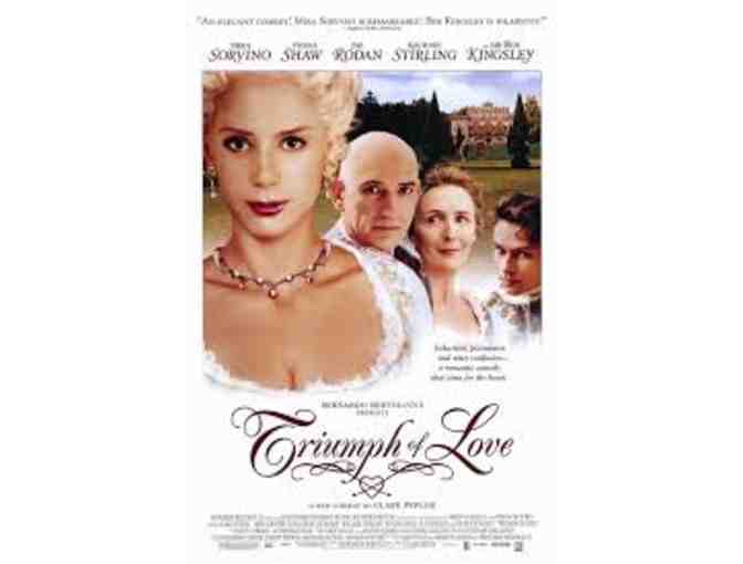 Triumph of Love (2001) Movie Poster Signed by Cast Members Sir Ben Kingsley (Oscar Winner), Mira Sorvino (Oscar Winner), Clare Peploe. Poster measures 27x40 framed.