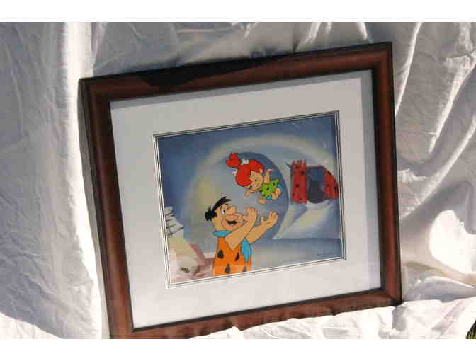 Flintstones Sericel that measures 21"x19" from frame edge to frame edge. Valued at $295.