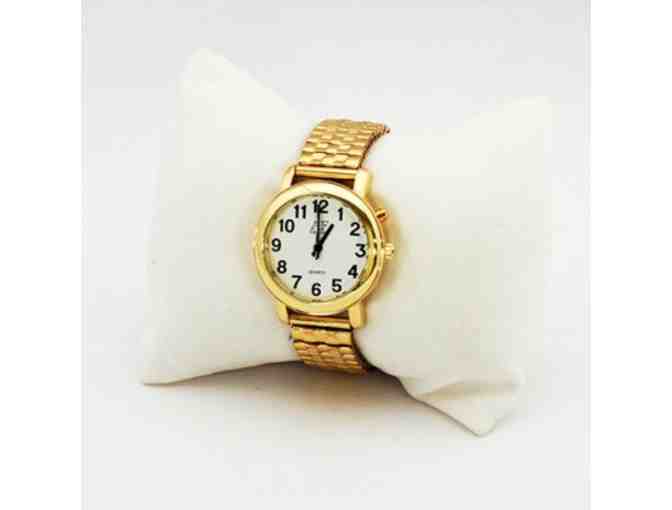 The Talking Watch in Gold with white face assists those who are blind or visually impaired lead a more independent lifestyle. Know the date and time at any time just by pressing a button, this attractive talking man's watch comes with an expansion band to fit all sizes.