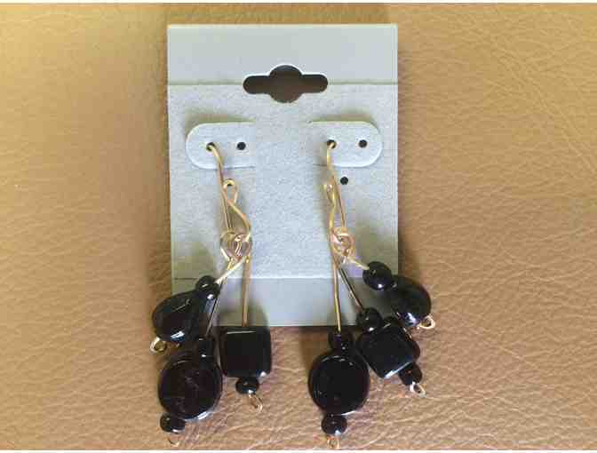 Onyx triple-dangle earrings & pendant