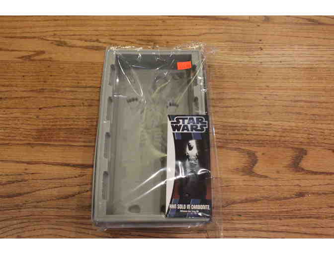 Silicone Han Solo ice cube tray measures 10"x4". Perfect addition for a Star Wars party!