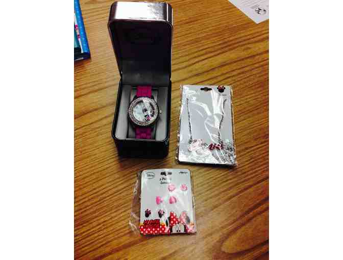 Do you love Minnie Mouse? Enjoy this accessory set: watch, earrings, and necklace!