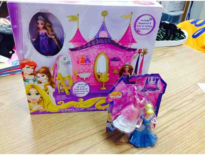 Your child will love the Shimmer Style Salon which includes Rapunzel and lot sof styling accessories and a mini Cinderella!