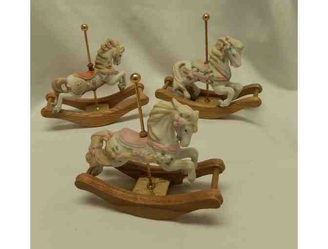 3 collectible rocking horses-white porcelain and wood