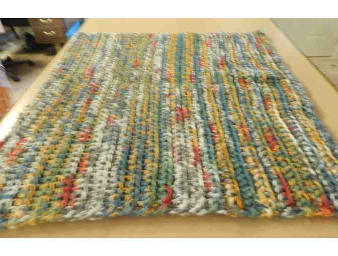 Crocheted kitty throw is 24"x22" and donated by Lois Pestka-Wruck, the Snuggles Project