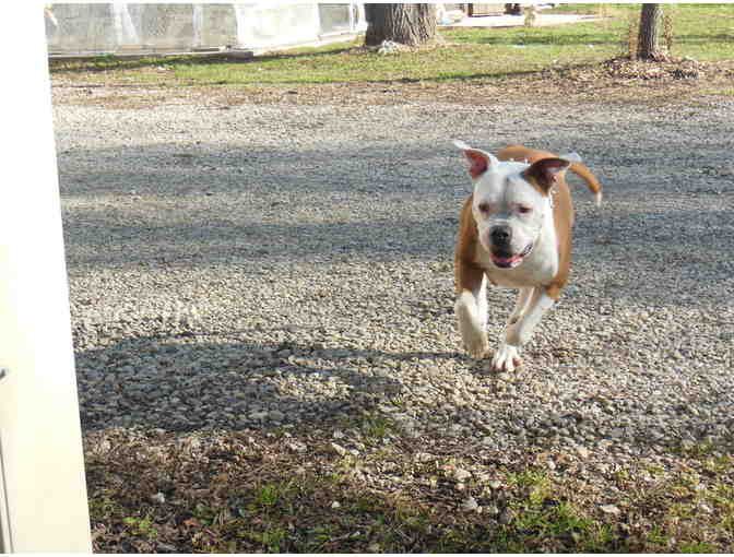 Lucy is one of only TWO dogs in residence at Rustic Hollow. She was dumped near our sanctuary and had horrible bumps all over her. It was obvious she had been overbred and abused and neglected. It wasn't long before the tail between her legs began to trust and wag when she would see us. She also is being treated daily for seizures, but she is loved and happy at Rustic Hollow. Incidentally, the two dogs have a very BIG house they live in and they have window A.C. and a heater for winter months. Your winning bid will sponsor Lucy up to 3 months