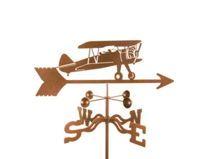 If your idea of aviation involves the wind in your hair, bugs in your teeth, and the guttural roar of a radial out front, this Bi-Plane Weather Vane is right up your alley. Besides the characteristic windcups and directional components that comprise every wind vane, this pilot-friendly unit also features a classic, open-cockpit taildragger ready for takeoff - and it's always perfectly positioned into the breeze. Measures approximately 18½" x 8¼" and includes your choice of a roof mount or a garden mount. A high-caliber tribute to the golden age of flight that's sure to resonate with pilots of every generation.