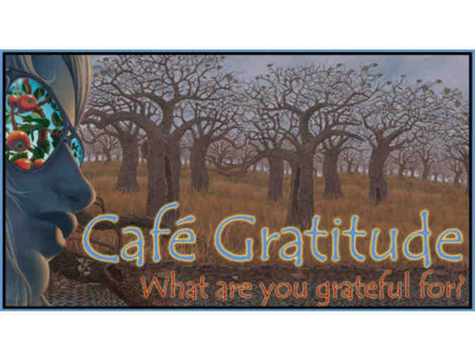 Café Gratitude is a collection of 100% organic plant-based restaurants specializing in gourmet cuisines. We strive to create a menu and environment that supports health and sustainability for both our community and the planet. We practice business through a term we call “Sacred Commerce”, where we provide inspired service, honest and transparent communication, and express gratitude for the richness of our lives. Check out our menuand come dine with us. Come to our workshops & classesand learn with us. Visit our online store and support us.
