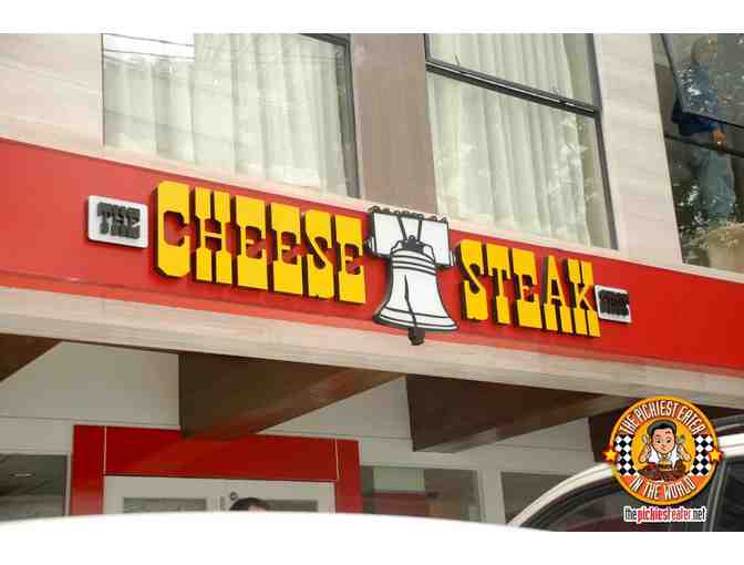 Certificate to the Cheese Steak Shop good for Dinner for Two, includes: two (2) 10" sandwiches, two (2) small chips or fries, two (2) desserts, and two (2) non-alcoholic beverages.