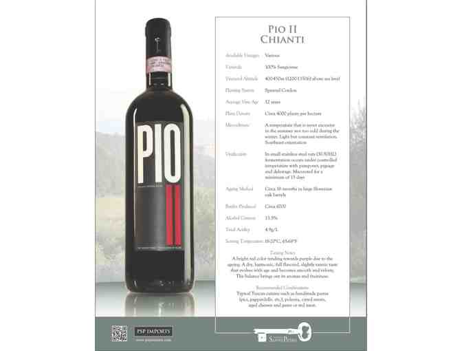 Case of Italian Pio chianti, vintage 2007. Classic, full-bodied chianti will be delicious paired with pasta, filet or to sip along with your favorite fromage.