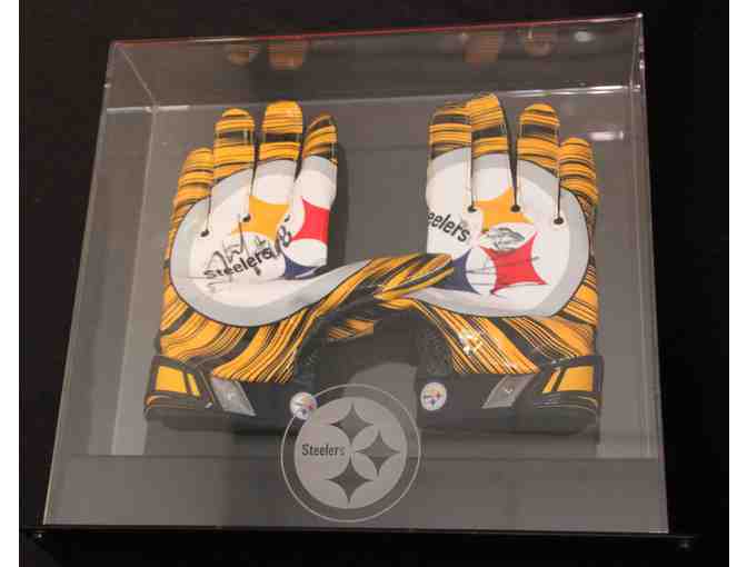 Any black and gold Steelers fan will love this colorful pair of autographed gloves, displayed in a very professional plexiglass case.