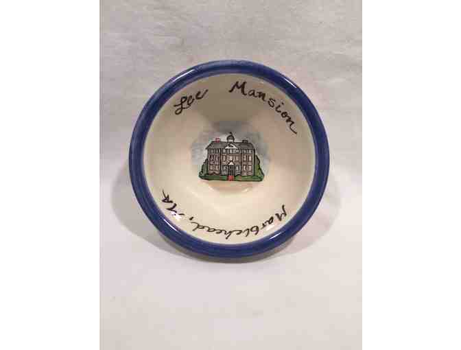 This bowl is a rare treat. Hand-painted with the Lee Mansion inside, this Hestia creation is absolutely gorgeous and a real tribute to a Marblehead treasure.