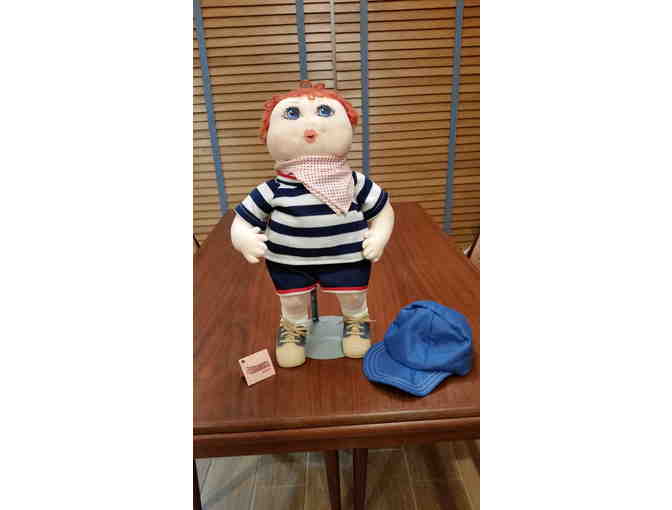 "Roscoe" is a Carousel Cloth Doll. He is 18" tall and almost 12" across. He is upright because he comes with a doll stand.
