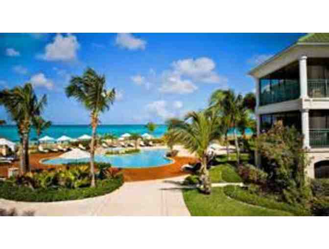 4 night/5 day condo at The Sands Resort on Grace Bay, a luxury 4 star resort in Turks and Caicos, BWI. One bedroom suite with full kitchen and large screened porch with 90+ view of ocean. Includes three pools and full acess to beach equipment and gym, a $100 gift certificate at Hemingway's Restaurant and a $25 gift certificate at "Somewhere on the Beach" Restaurant and Bar.