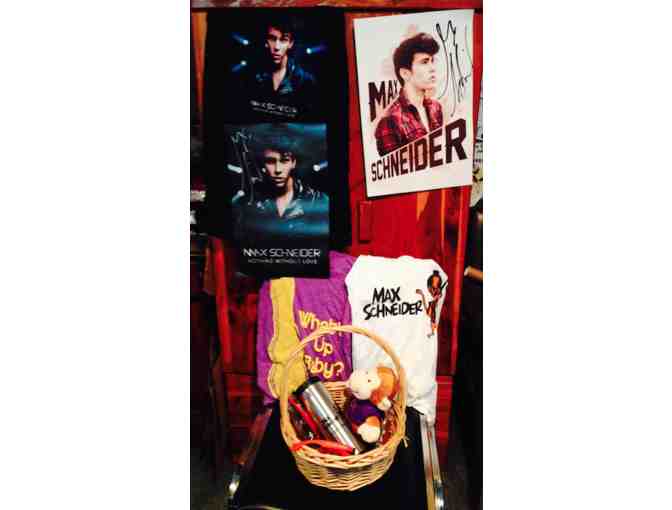 Basket filled with assorted collector's from singer-songwriter, dancer, actor, model, and musician Max Schneider: