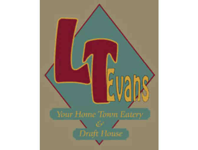 Delightful dining at L.T. Evans Restaurant in Danville can be enjoyed with this gift card. Sample prime rib, seafood, great sandwiches and salads and an array of craft beers.