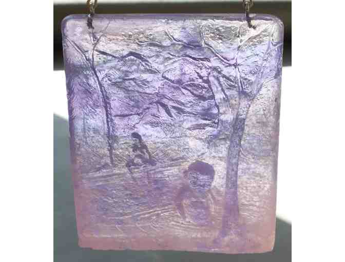You may have missed out on the other tile designed by Christina Bothwell and executed by Robert Bender, but this one is still available. Cast in colored glass, this will look beautiful in your bright living room window.