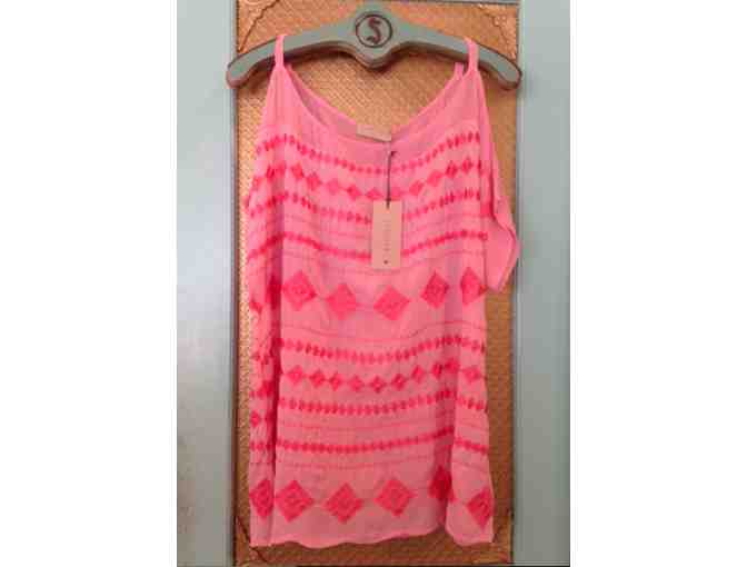 A beautiful embroidered sleeveless silk blouse by Language. Size woman's medium.