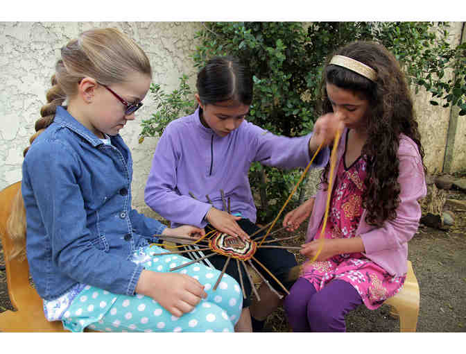 Each WSP 3rd Grade student has collaborated on a weaving project which uses hand dyed yarn and 18 points of willow sticks that have been harvested in the school garden. The yarn, grown, harvested and processed by the students, has been dyed with flowers, onions, and madder root.