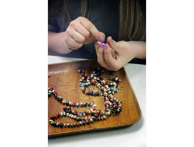 WSP middle school students have grown and harvested ancient varieties of colorful flint corn, which they have then dried and hand crafted into elaborate jewelry. This unique and beautiful jewelry is expected to last many years with care and safe storage.