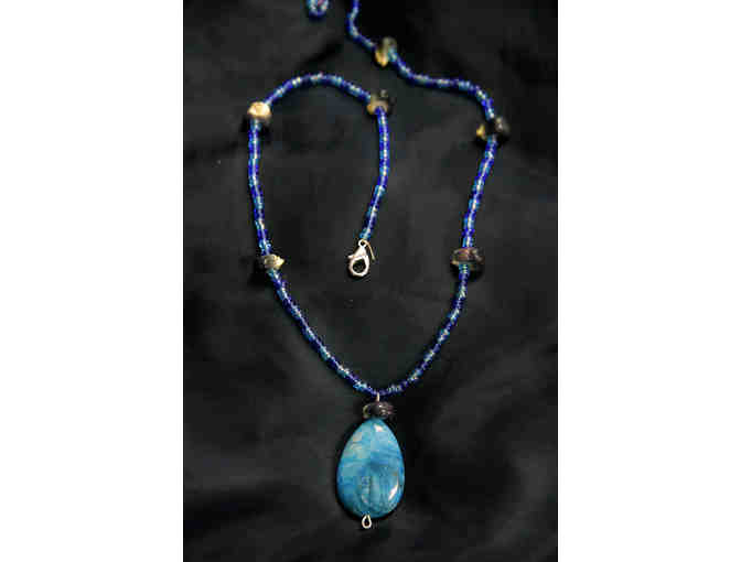 Blue Hopi Flint Corn Blue Jasper necklace & earring set hand crafted by WSP Grade 6