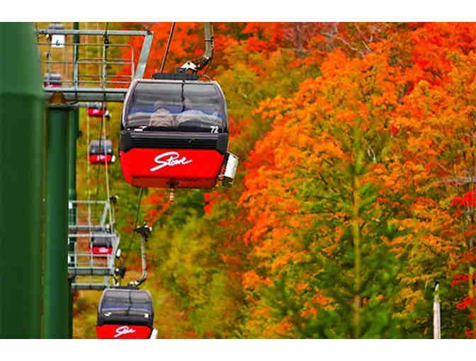 A voucher redeemable for 4 Adult Round Trip Gondola Sky Rides for Stowe Mountain Resort. Valid during the Fall 2015 season.