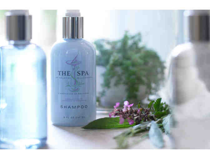 Basket filled with products from the Spa of Colonial Williamsburg. Includes: 8oz Lavender Lemongrass Lotion, 8oz Lavender Lemongrass Bath Gel, 8oz Lavender Lemongrass Shampoo and Conditioner, 8oz Lavender Lemongrass Body Scrub and (2) Oatmeal Lavender Facial & Bath Bars