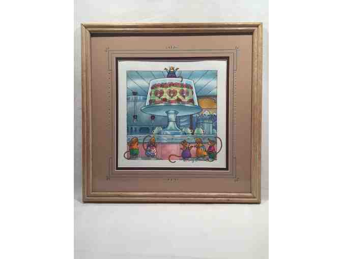 The illustration is beautifully framed and matted and was done for the accompanying Scholastic book. It was displayed at the Kensington-Stobart Gallery as part of a fantastic exhibit done by Katy in 2013. The display card is included.