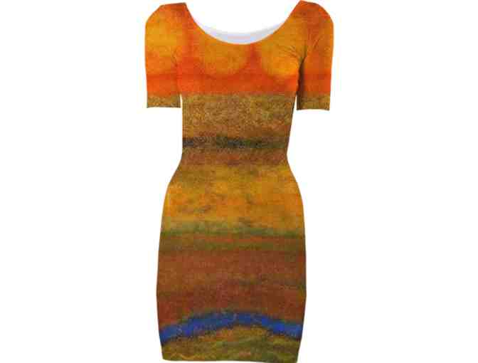 ARTWORK will cover the front and back of the dress / The back will mirror the front. Dry clean only