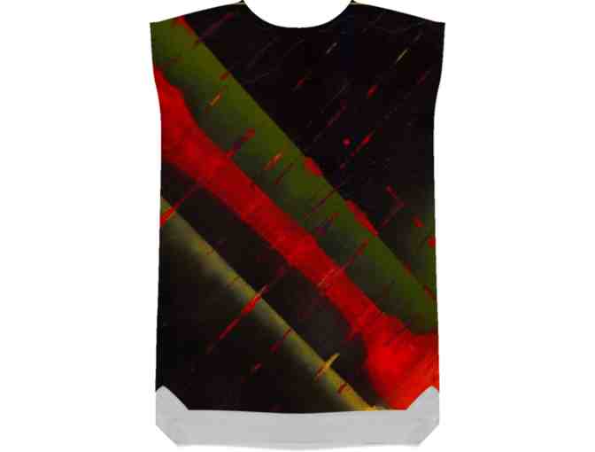 Show off those beautiful legs and float through any event in artified style that will, definitely, get YOU noticed! or... Throw on a pair of jeans, leggings, or leather pants and simply "strut" this work of art anywhere you go!