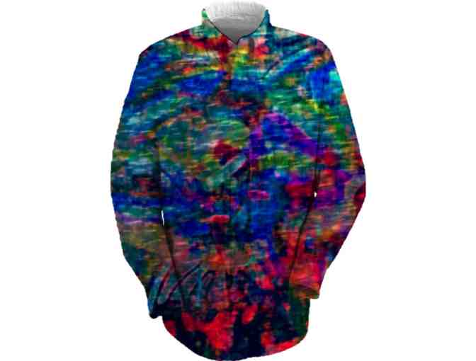On a more personal experience note: When I ordered the original samples, I could not resist ...I had to wear them, and these art shirts have become my "go to essential" in my wardrobe! I could not begin to even describe how comfortable and versatile they are...with jeans, open with a tank under, or belted...they are color saturated, have long lasting sturdy heft, yet these shirts are so dang comfortable, I keep ordering more! Yes, it is fun..really WAY COOL to WEAR ART!! (WBK)