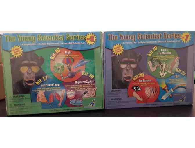 For your young budding scientist. The Young Scientist Series set #6 includes Kit 16: Flight, Kit 17: Heart and Lungs and Kit 18: Digestive System. Set #7 includes Kit 19: Bones and Muscles, Kit 20: The Senses and Kit 21: Light. Each set includes three complete kits with multiple experiments and hours of hands-on fun!