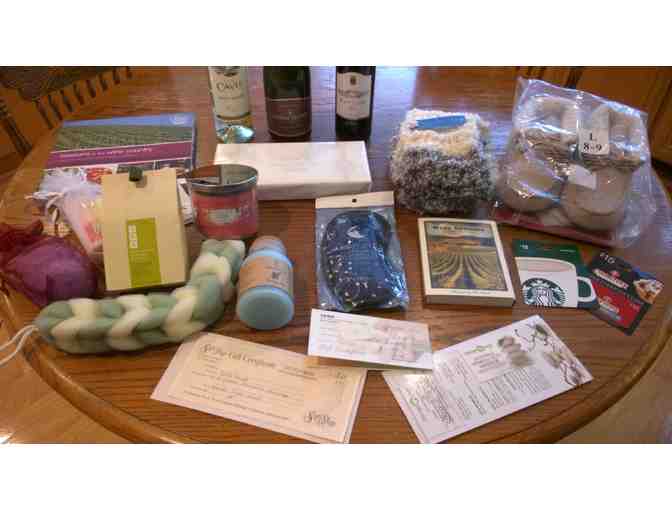 Mother's Day is coming! Treat a mom in your life, or treat yourself with this amazing basket donated by Meadow Staff. Included she will find, 2- one hour massages, a pedicure, Starbucks and Coldstone Gift Certificates, a handknitted infinity scarf, and fur lined moccasin slippers (size L). She can indulge in a one-pound box of See's Chocolates and pair it with a bottle of red wine, white wine, or even champange while she flips through a Seasons in Wine Country cookbook. Then she can have a spa at home experience, light the candles put on the sleep mask and relax in a tub with Green tea bath packets, srubbies, soap and lotion packs and toning face mud.