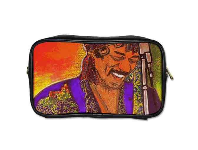 "Jimi's Smile": UNISEX Essentials Travel bag, Leather with ART inset; detachable strap!