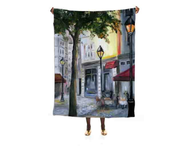 "A PARIS CAFE" by Derek Rutt: HUGE SILK SCARF!, "Suitable For Framing" too!