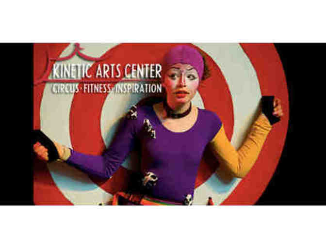 Fulfill your dream of running away with the circus! Kinetic Arts Center provides an extensive class offering for aspiring clowns, aerialists, acrobats, jugglers, contortionists,basically, all things circus! Options for class offerings for this package include static trapeze, rope, tissue, circus kids class, acrobatics, hand balancing, clowning, yoga, pilates & mat, and pole fit & play.
