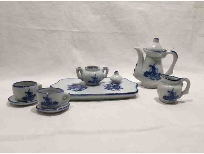 This adorable little tea set is a rare find and designed to mimic Delft pottery with its rich cobalt blue and windmill motif. Such a sweet gift for a child, or a collector.