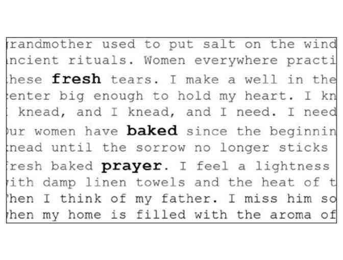 Desiree will bake two loaves of challah bread, one Friday each month, for one full year, and deliver them locally. Put some Fresh Baked Prayer on your table. Choose from two delicious braided loaves, or delightful pull-apart rolls. Homemade, with Love for Leith. This bread will make you shout, "Challaluia!"