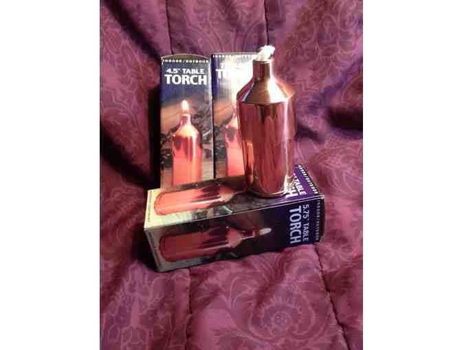 A set of 3 handcrafted copper table torches ranging in size from 4" to 7". By Woodstock Copperworks.
