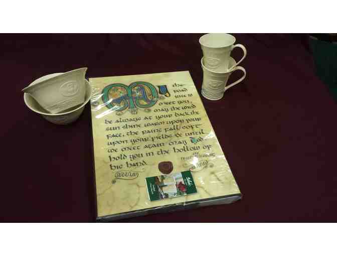 Irish Blessing Print with Belleek Mugs & Bowls