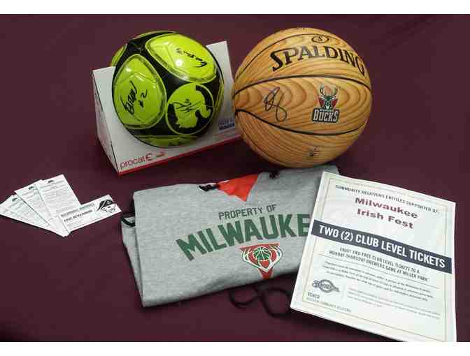 Sports fans unite! Get your athletic groove on and use these tickets: Four tickets for the Milwaukee Bucks (2015/16 season), Four tickets for the Milwaukee Admirals (Oct-Dec 2015), two club level seats for the Milwaukee Brewers (through Sep 17, 2015), and two tickets for the Milwaukee Wave (2015/16 season). Also, get bragging rights with a soccer ball signed by the Milwaukee Wave, a basketball signed by the Milwaukee Bucks and Wave T-Shirts.