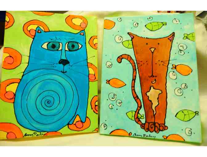 These 2 adorable original art on canvas cats were donated by Julie Bowen.