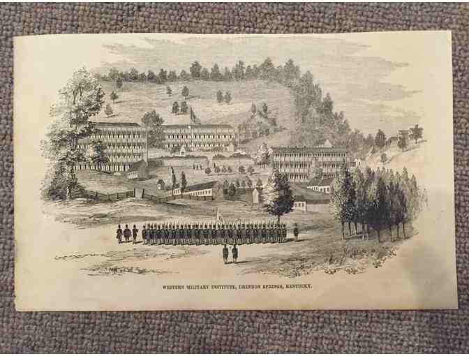 This item is an original wood block engraving print of Western Military Insitute, Dennon Springs, Kentucky.