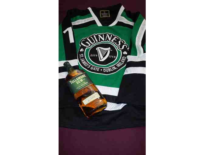 Who can resist this authentic Guinness hockey jersey straight from the factory itself? Show your Irish Pride in this Men’s XL jersey, for playing Rugby, football, hockey or just playing around with a pint! Included is a bottle of the world famous Tullamore Dew, legendary Irish whiskey.
