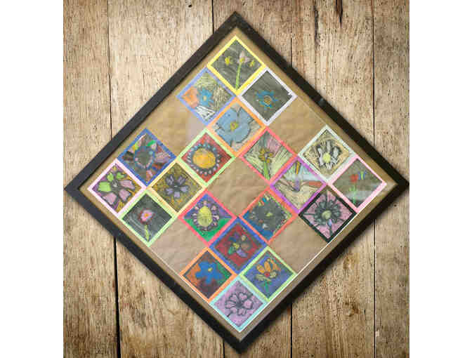 32”x32” framed and matted drawings of imaginary flowers. Each student created their own flower for this collaborative piece.