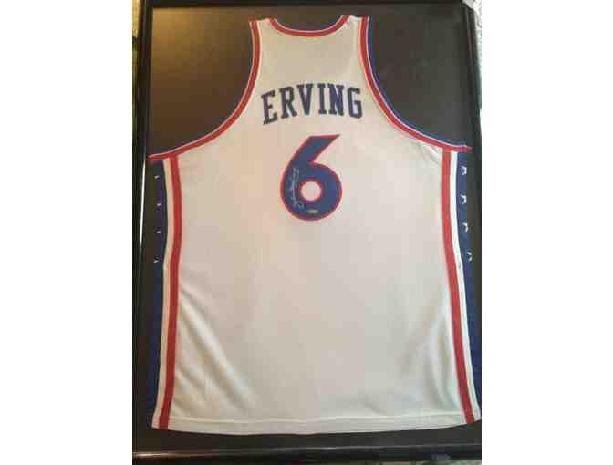 Framed Dr. J (Julius Erving) Autographed 76ers Jersey, Upper Deck Purchased at a Burn Prevention Golf Outing at Saucon Valley Country Club.