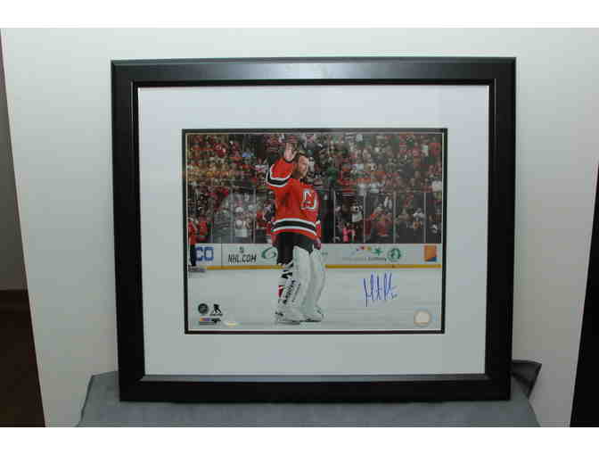 Devils' great Martin Brodeur has personally hand-signed this framed 'Final Game As A Devil’ Photo.