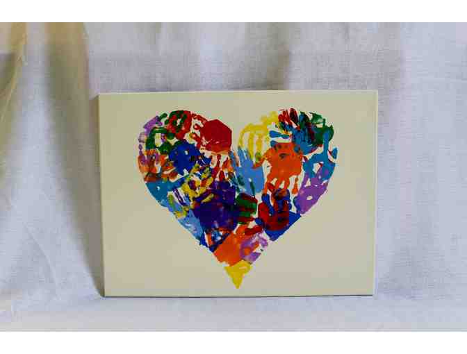 Two canvases created by our Kindergarten class are full of love and handprints! A colorful heart created with each student’s handprint fills one canvas, while the other depicts a handprint tree accompanied by a heartfelt quote from Winne the Poo.
