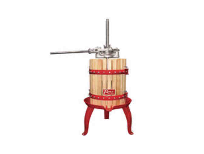 Extract the juice from soft fruits and fruit pulp quickly and easily with this double-racheting press that maximizes juice output and minimizes waste. The barrel-shaped cage holds 16 quarts of fruit. Made of heavy-duty coated cast iron, food-grade enameled steel and hardwood for a lifetime of use. Includes 10 wooden pressing blocks and two semi-blocks. Legs may be bolted down for additional leverage.
