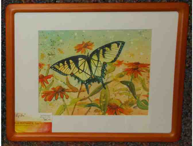 Here's a lovely framed watercolor of a butterfly in GFS colors of orange and green.